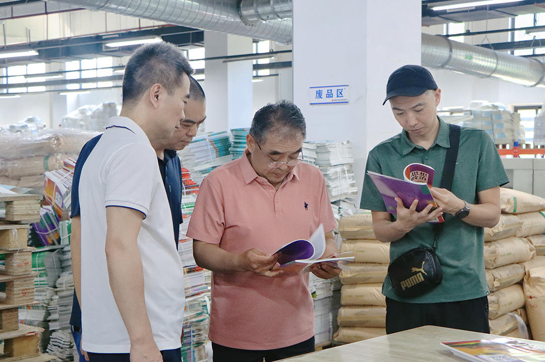 当前正值教材印制高峰季,为筑牢人教版中小学教材质量根基,确保以最优品质完成2025年秋季教材印制任务,7月31日,人民教育出版社一行赴印务集团,开展秋季教材印制专项巡检抽检工作。海峡出版发行集团教材中心主任汤伏祥,印务集团董事长黄翔、总经理缪后卫及海峡出版发行集团相关部门、印务集团相关部门、生产中心负责同志全程陪同检查。