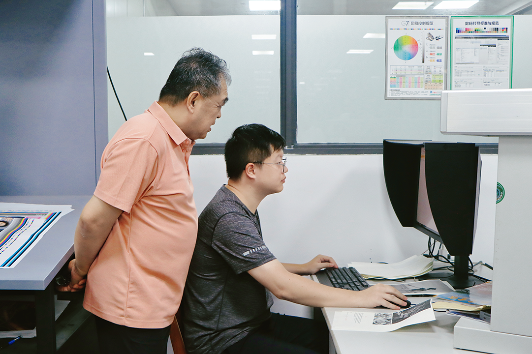 人教社一行深入印务集团各教材印制生产中心,聚焦印刷质量关键环节,检查印刷设备运转情况及教材印刷、装订流程,并对教材成品进行质量抽检。